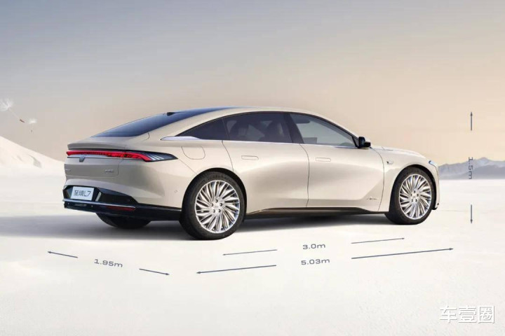 再具体看到刚刚上市的至境L7,新车定位中大型轿车,长宽高分别为5032/1952/1500毫米,轴距为3000毫米,配合源于概念车ELECTRA-L的造型设计,新车无论是前卫感还是气场,都非常到位。
