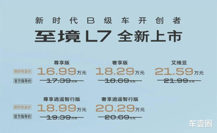 最后大家也看到了,至境L7的定价比预期便宜了太多,不到17万元的入门价,几乎看齐了同级的自主新能源车型。毫无疑问,在价格上,至境L7确实是诚意十足。